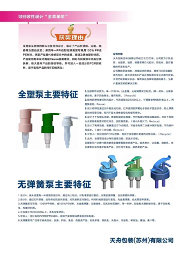 天舟包装(苏州)有限公司(获奖产品:全塑泵;无弹簧泵)