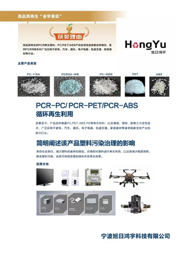 宁波旭日鸿宇科技有限公司(获奖产品:高品质PC再生、PET再生、ABS再生、PE再生)
