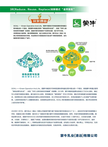 蒙牛乳业(清远)有限公司(获奖产品:绿色运营与生活体系)