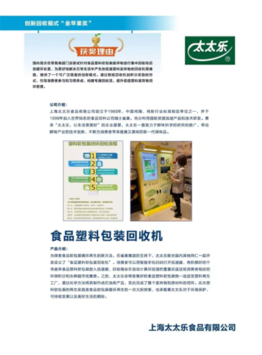 上海太太乐食品有限公司(获奖产品:塑料软包装智能回收项目)