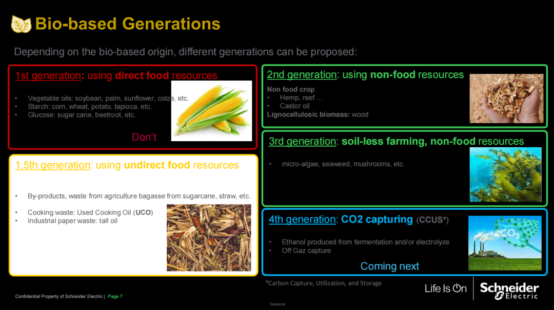 生物基塑料创新:介绍了多代生物基材料的探索路径,并表示由食品作为源头的生物基材料不能被认定为绿色。