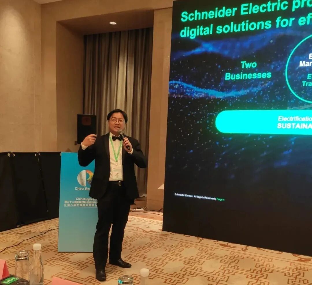 施耐德电气围绕“全球可持续发展策略以及绿色塑料在产品中的创新应用”展开了深度分享。报告提出:在应对全球气候挑战和产业绿色转型背景下,塑料材料的循环利用、绿色替代与创新应用,已成为施耐德电气推动供应链变革与产品创新的核心战略之一。