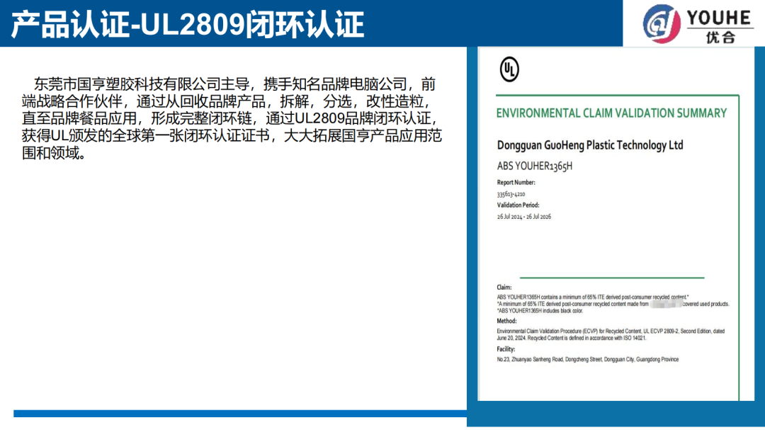 UL2809品牌闭环认证:全球首张认证,标志着PCR材料在闭环再生体系中的里程碑式突破;