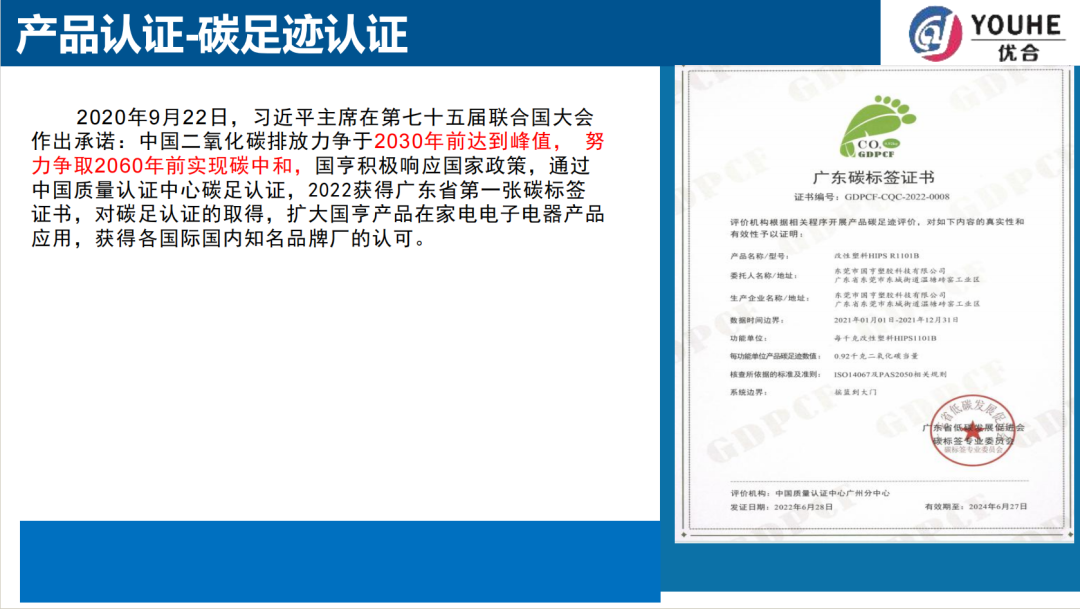 国亨85%PCR材料碳排仅0.81kg CO₂/kg;