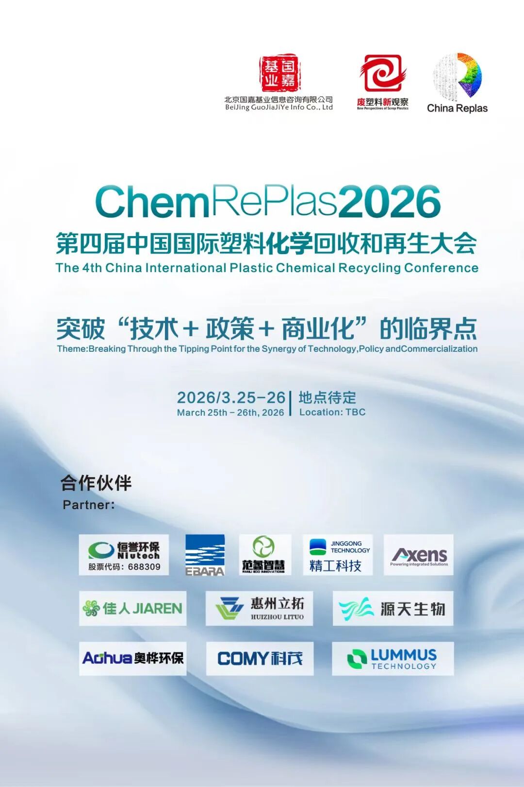 第四届中国国际塑料化学回收和再生大会2026年3月25-26日会议咨询,请加微信:18901309935在全球积极应对塑料污染、推进绿色低碳转型的背景下,废塑料资源化利用已成为破解环境难题与资源瓶颈的关键路径。惠城环保科技集团凭借其全球领先的混合废塑料深度催化裂解(CPDCC)等核心技术,正通过示范项目优化、战略合作深化与规模化产能布局,稳步构建从技术研发到产业落体的循环经济生态体系,为塑料污染治理贡献着坚实的“中国方案”。 — 1 —核心项目优化与产能布局同步推进 惠城环保旗下20万吨/年混合废塑料资源化综合利用项目作为行业示范工程,目前正按计划进行技术改造。该项目主要产出液化塑料裂解气(主要成分为丙烯等低碳烯烃)与塑料裂解轻油(主要成分为混合芳烃)。为保障装置后续高效稳定运行,项目已于2025年11月20日进入技改阶段,相关工作进度符合预期,预计12月下旬完成。公司配套建设的加氢装置核心目的是为提升裂解装置产出产品品质提升,目前按照既定进度表正常推进。 在20万吨示范项目技改攻坚的同时,惠城环保的规模化产能复制已启动。目前...