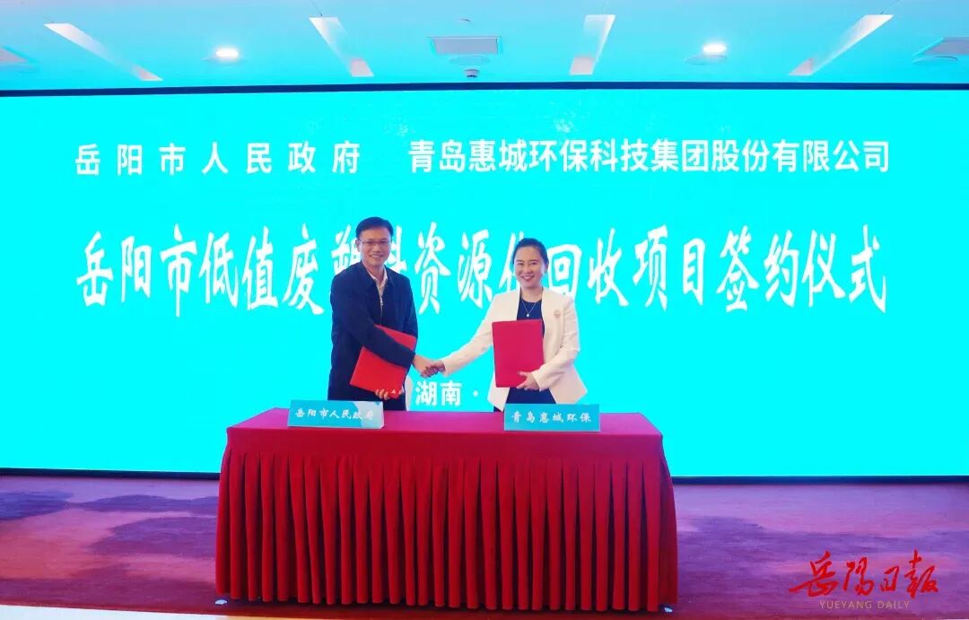 12月15日,岳阳市人民政府与青岛惠城环保科技集团股份有限公司举行项目签约仪式,市委副书记、市长李挚,青岛惠城环保科技集团股份有限公司高层领导代表致辞。此次签约,惠城环保达成了与岳阳市低值废塑料资源化回收项目、与云溪区人民政府分拣清洗中心项目、以及与岳阳绿色化工高新区的废塑料裂解项目三项规划合作,三个项目层层衔接,前端回收与分拣清洗中心的高效建设与运营,将为后端裂解提供稳定、充足的原料保障,是推动废塑料化学循环项目未来规划落地的关键基础。项目规划落地岳阳后,每年可减少二氧化碳排放约900万吨,替代原油消耗360-540万吨,所产烯烃、芳烃等产品可直供本地石化企业,贯通产业链上下游,推动区域石化产业向高端化、低碳化转型。