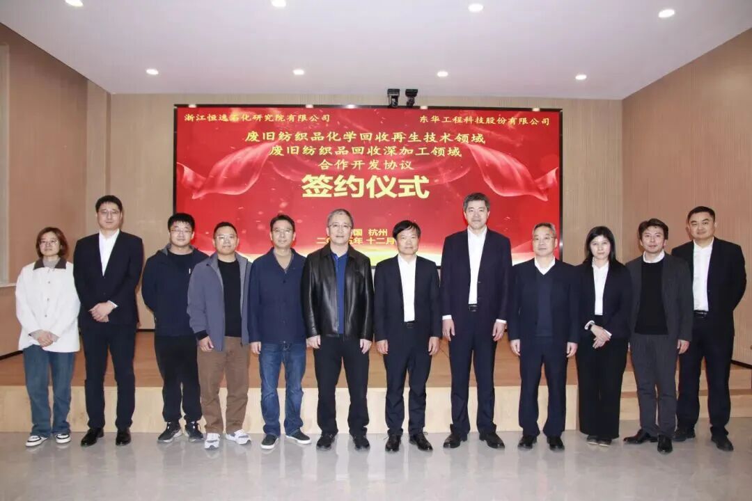 12 月 2 日,中国化学工程集团旗下 东华工程科技股份有限公司 与 浙江恒逸石化研究院有限公司 在杭州签署“废旧纺织品化学回收技术合作开发协议”。双方将围绕“废旧纺织品化学回收再生技术”与“废旧纺织品回收深加工技术”联合攻关,推进成果工程化和产业化应用。