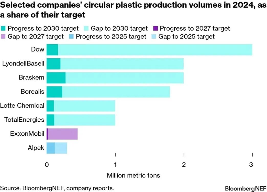 彭博评估40家品牌及石化巨头:循环转型,卡在供需