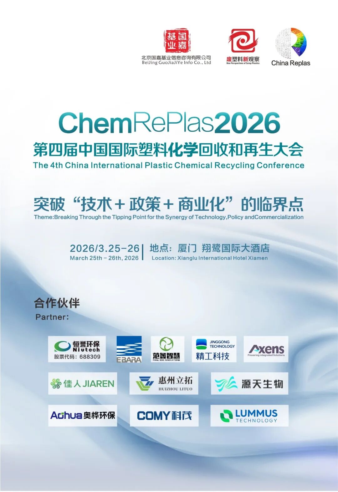 政策加码,技术破局,商业落地!我国塑料化学循环行业正迎来历史性爆发节点。 近日,国家七部门联合印发《再生材料应用推广行动方案》,明确支持行业龙头企业开展废塑料化学循环产业化应用。这一政策信号的释放,标志着我国塑料化学循环行业正站在技术规模化、政策系统化、商业闭环化三重突破的历史临界点。方案不仅明确支持化学循环产业化应用,更在原料来源、产品认证、市场应用等环节提供系统性政策框架。 生态环境法典草案三审稿则在“绿色低碳发展”篇中明确指出:“国家鼓励再生材料推广应用,推动建立再生材料认证制度,支持汽车、电器电子等产品的生产者提高再生材料使用比例。” 这为产业发展奠定了坚实的法律与政策根基。 恰逢全球塑料循环经济加速升级的关键节点,ChemReplas2026 第四届中国国际塑料化学回收和再生大会即将于2026年3月25日-26日在福建·厦门举办。本届大会以“突破‘技术 + 政策 + 商业化’的临界点”为主题,汇聚全球行业专家、企业代表与政策制定者,共同探讨化学循环从技术突破到规模化商业落地的可行路径。 — 1 — 洞见与实践:破...