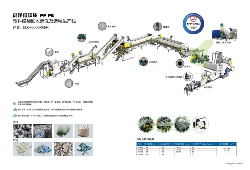 三、食品级 PE PP高净值硬质塑料清洗回收生产线