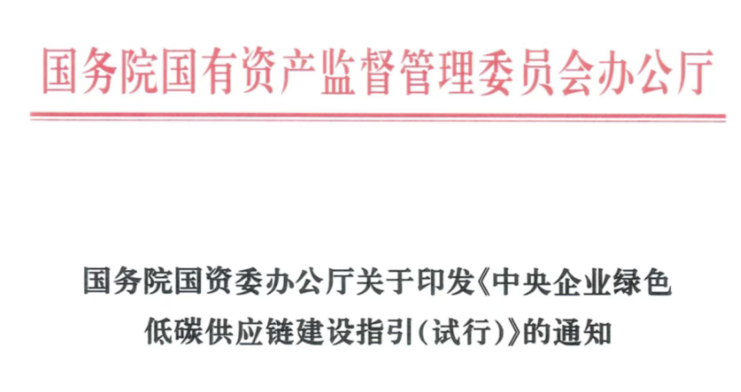 国务院国资委印发指引 推动中央企业绿色低碳供应链建设