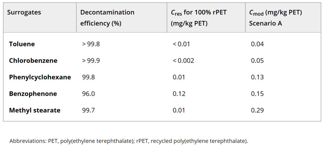 在至少与用于测量该过程去污效率的挑战试验条件一样严苛的条件下运行; 该工艺的输入材料是洗涤和干燥的消费后 PET 薄片,这些薄片来自根据欧盟食品接触材料法规制造的材料和物品,并且含有不超过 5% 的非食品消费品应用的 PET; 从NGR LSP工艺中回收的PET,用于制造与各种食品接触的材料和制品,包括饮用水,在室温或更低温度下长期储存,无论是否进行热灌装,其使用比例最高可达100%。