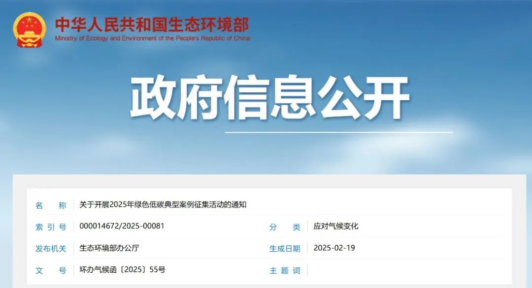 2025年4月,对案例名单进行公示并按程序报批。2025年全国低碳日期间公布名单,并在生态环境部官网、两微平台发布。