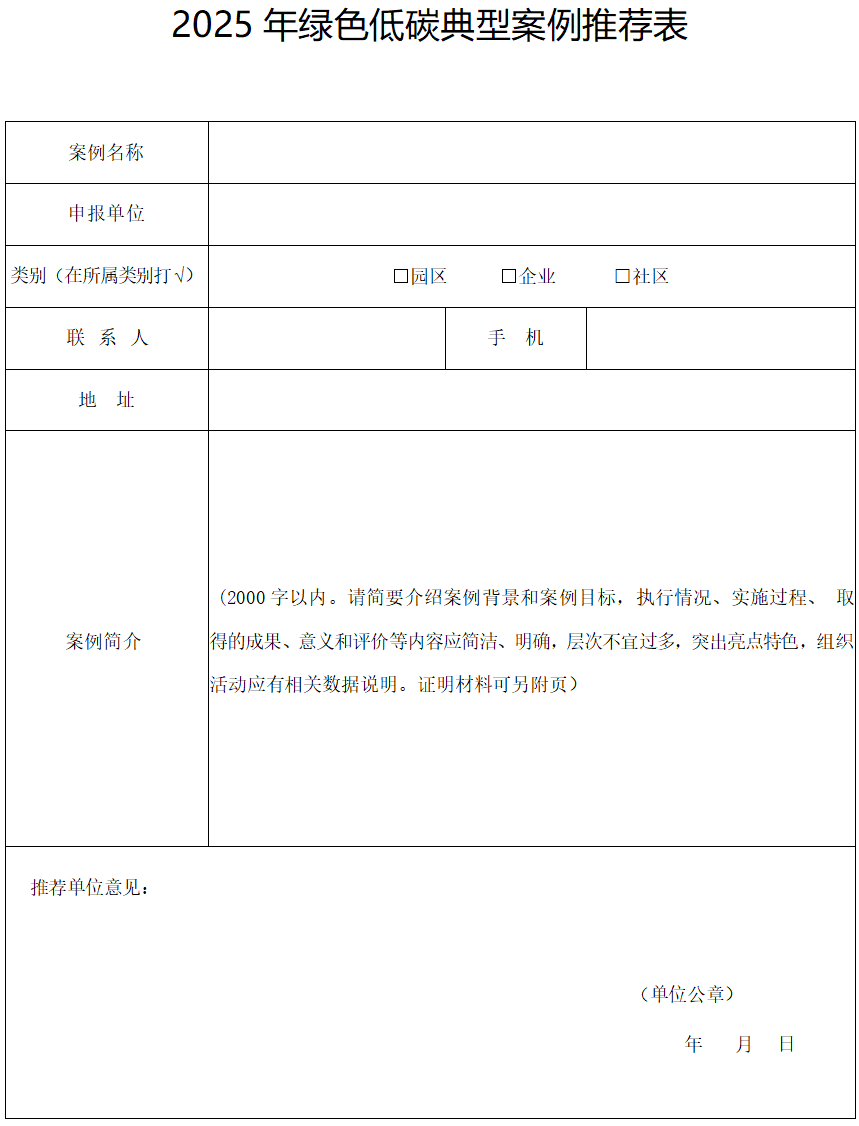 关于开展2025年绿色低碳典型案例征集活动的通知