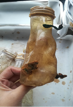 在3月21日召开的“中国国际塑料产品‘为了回收的设计’”会议上,塑料回收再再生企业集中反映了阻隔瓶对回收再生的技术挑战。以某茶饮类PET瓶为例,在回收高温烘烤后,极容易引发PET变色,导致再生材料品质下降。
