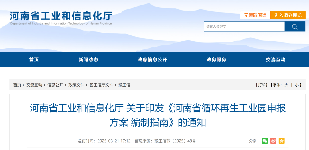 为贯彻落实《河南省制造业绿色低碳高质量发展三年行动计划(2023—2025年)》《河南省固体废物综合利用产业绿色低碳高质量发展行动方案》《河南省废弃物循环利用体系建设行动方案》,构建循环再生产业体系,推动特色循环再生工业园建设申报。近日,河南省工信厅印发了《河南省循环再生工业园申报方案 编制指南》。