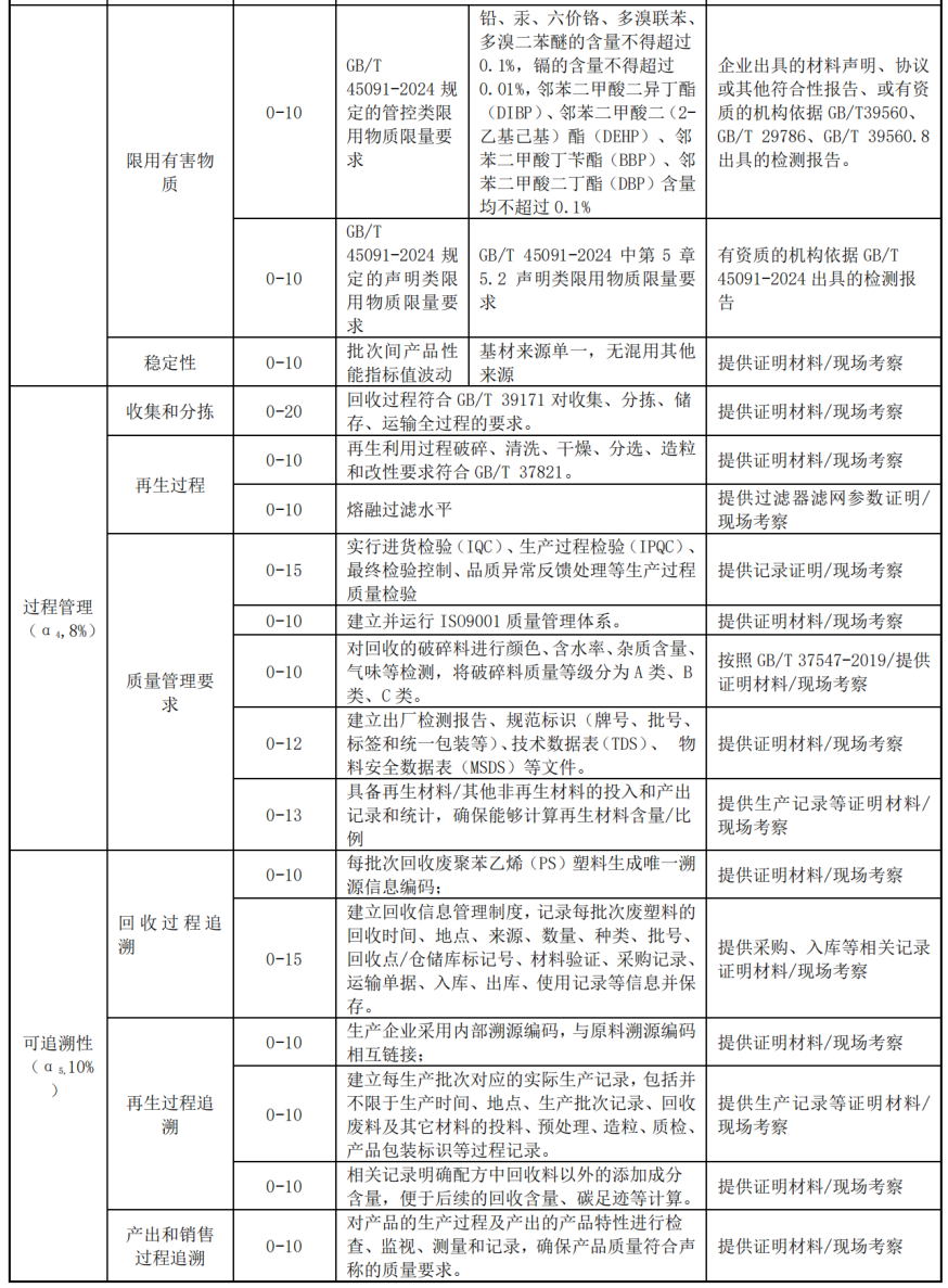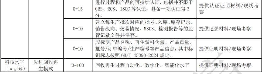 ——可追溯属性评价:包括收集、转运、分选、破碎、清洗、造粒、流通使用全过程信息溯源要素评价。