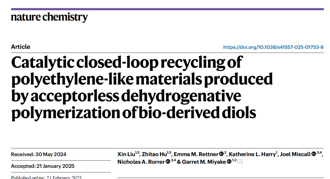 大子刊 Nature Chemistry丨能取代聚乙烯的新材料,可反复回炉再生!