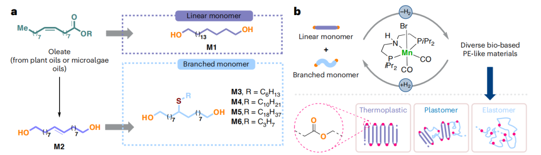 摘要:随着全球塑料污染问题愈发严峻,开发可降解、可回收的新型材料成为化学和材料科学的焦点。本文综述了一项突破性研究:研究者基于植物油提取的长链二醇,借助地壳丰富的锰催化剂,成功合成出一类聚乙烯(PE)类材料,并首次实现了其高效的闭环化学回收。该体系材料不仅具备与传统高密度聚乙烯(HDPE)和线性低密度聚乙烯(LLDPE)相似甚至更优的力学性能,而且能在不受常规染料、添加剂干扰的条件下实现多次高收率回收。研究从单体设计、催化聚合、材料性能调控,到闭环回收流程做了系统性探索,为构建可持续塑料循环经济奠定了坚实的化学基础。
