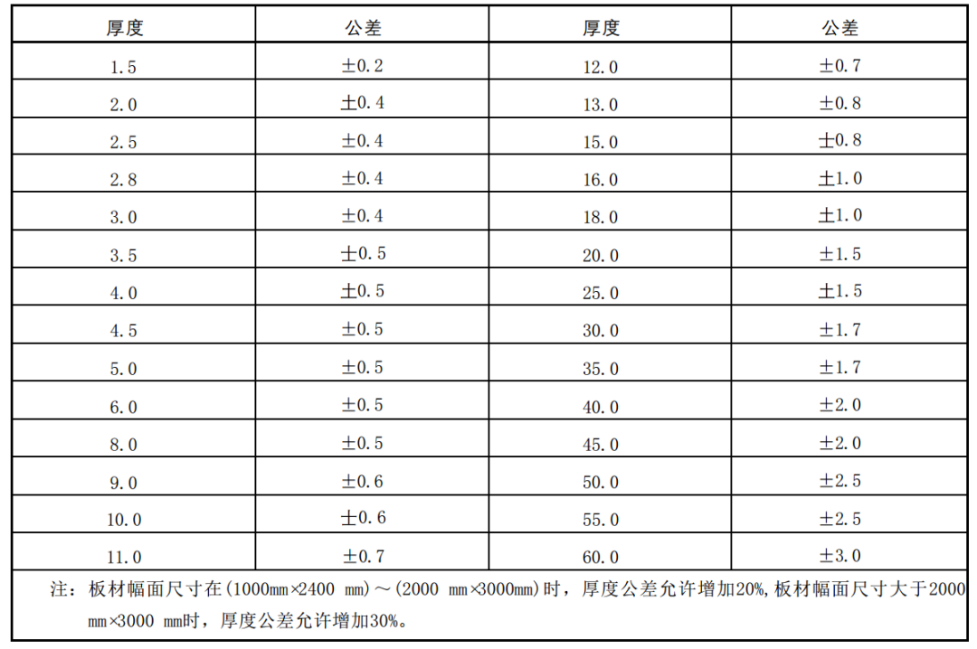 板材的长度和宽度由相关方商定。对于切割板材,其公差应符合表1的规定。
