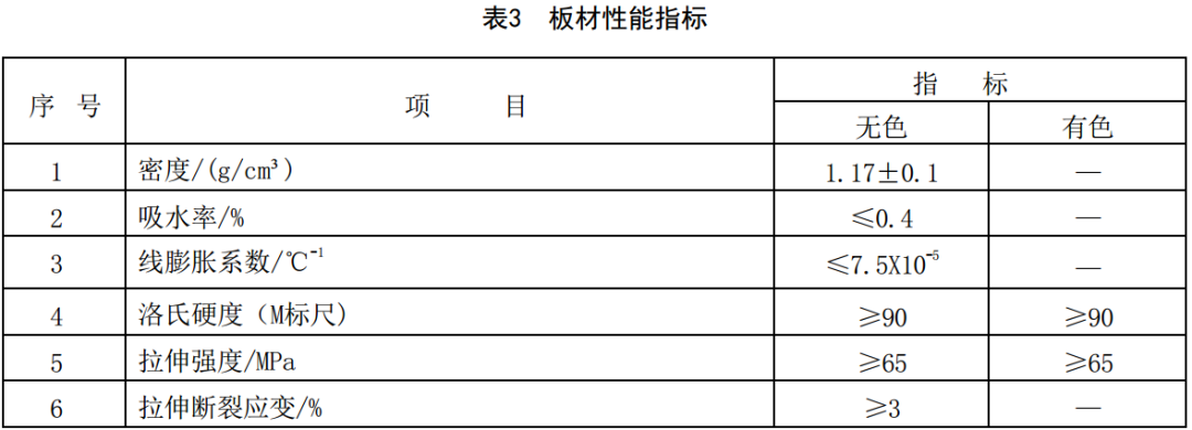 板材长宽平面面积范围内中,板材中不应有大于3mm²的气泡、杂质、裂纹、料结块或其他,对再生原料生产的有机玻璃板材预期应用性能,可能产生不利影响的缺陷。