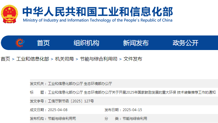 近日,工业和信息化部组织开展2025年《国家鼓励发展的重大环保技术装备目录》(以下简称《目录》)。《目录》由工业和信息化部、生态环境部联合制订发布,旨在推动行业技术创新,引导生产要素向重点领域、优势企业集中,满足我国环境治理的技术装备需求。