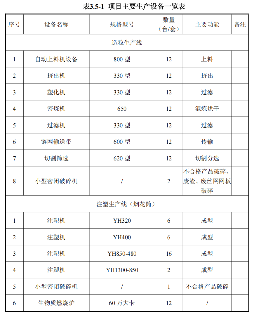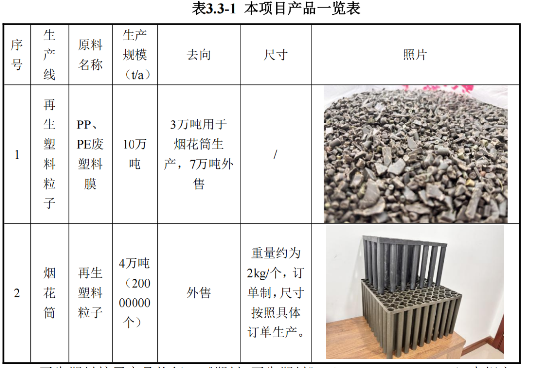 建设内容:租赁现有标准厂房,建设年产10 万t/a再生塑料粒子生产线,年产4万吨塑料制品烟花筒生产线及配套设施。