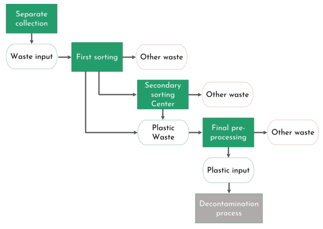 本指南聚焦于食品接触用再生塑料生产流程中的前端环节,即收集和分选过程。预处理操作(如清洗、粉碎)虽属关键环节,但已纳入其他认证体系范畴,这里简单概括。