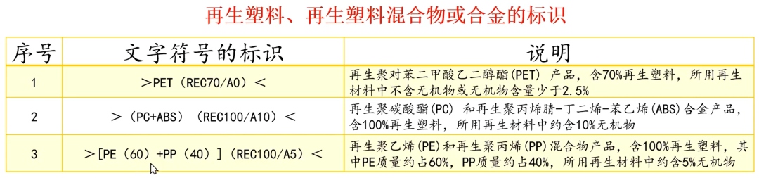 再生塑料、再生塑料混合物或合金的标识