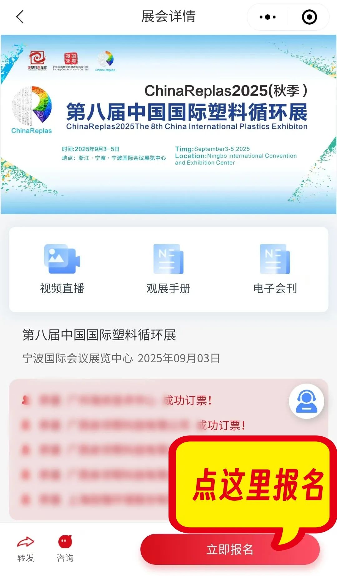 ChinaReplas2025第8届中国国际塑料循环展已经正式接受专业观众报名,点击下方海报链接,进入小程序,提交报名信息。