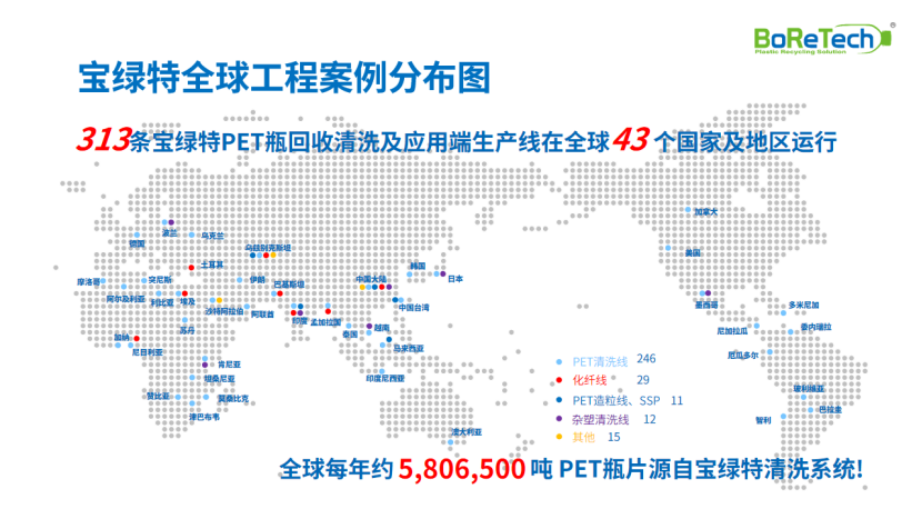 宝绿特的技术实力在实际项目中得到充分验证。为印尼欧绿保( ALBA) 工厂设计的 7 吨 / 时 PET 瓶回收清洗系统,是其目前在印尼的单线最大处理量产线。本项目宝绿特提供了从清洗线、污水处理系统到安装调试的一站式总包服务。