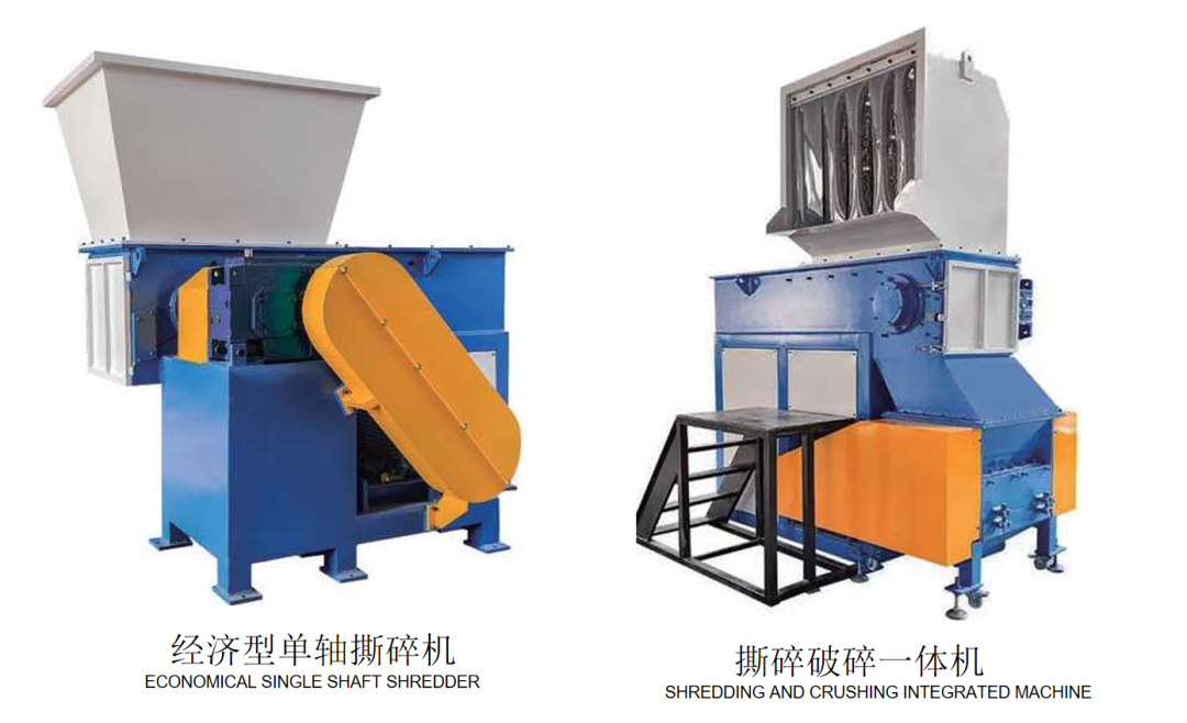 主要用于打包帯、轮胎、薄膜、编织袋、废旧渔网、大小蓝桶等塑料的破碎回收利用。采用双轴 独立驱动,独特的刀轴结构与四角旋转式刀具,在低转速高扭矩的生产过程中,不会出现缠轴、 或卡死设备的现象,从而提高了生产效率。