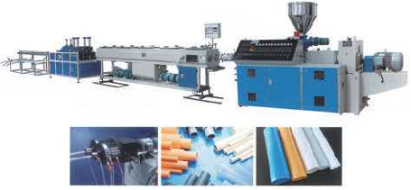 XYJ系列PVC管材生产线:XYJ系列塑料管材生产线主要用于生产农用给排水、建筑给排水、线统铺设等方面的各 种管径、壁厚的塑料PVC管材,该机组由锥形双螺杆挤出机、真空定型台、牵引机、切割 机、翻料架等组成。螺杆挤出机及牵引机采用进口交流变频调速装置,真空泵及牵引电 机均采用优质产品。牵引有二爪、三爪、四爪、六爪等牵引方式。可选用裾片或行星切割 形式,另可带计长及増厚装置,机蛆性能可II、生产效率高。本公司可根据客户的要求, 配置专用装置生产鐵旋消音管和芯层发泡管机组。