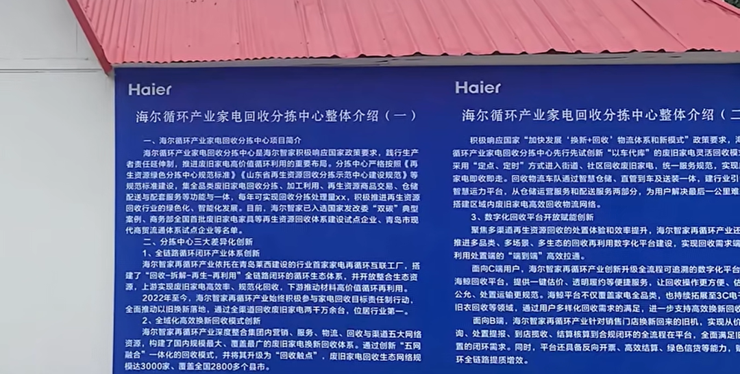海尔循环产业家电回收分拣中心启用,一机一码全追踪