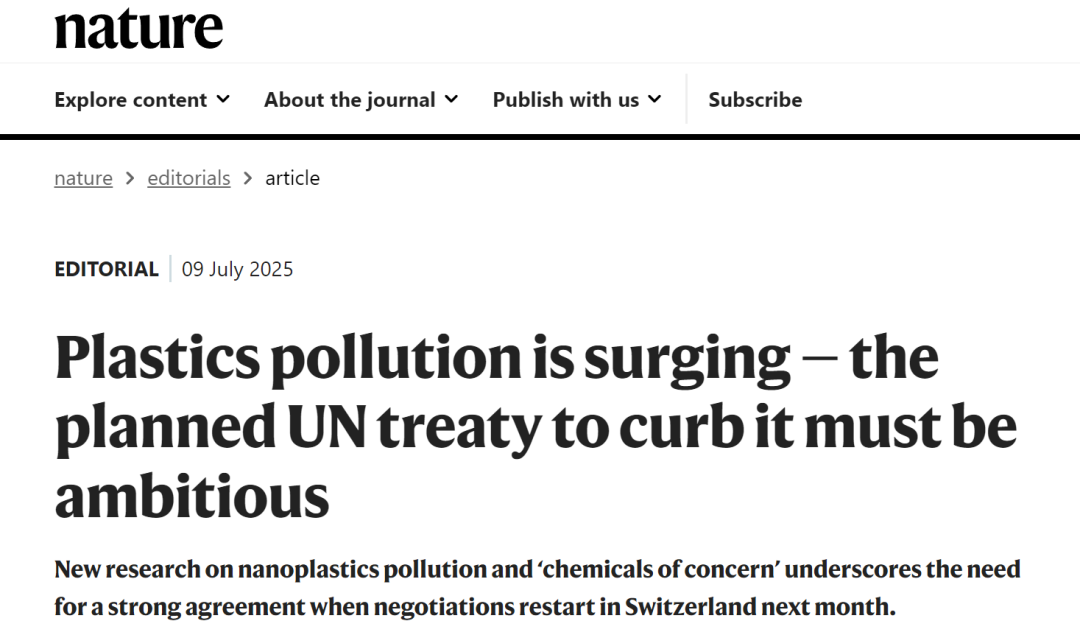 Nature在其社论《Plastics pollution is surging—the planned UN treaty to curb it must be ambitious》中指出,这种主张在科学证据面前已站不住脚。如果不限制塑料产量和高风险化学添加剂的使用,那么条约将形同虚设。Nature呼吁国际社会必须在此次谈判中坚持“强约束、高标准”的文本目标,而不是妥协于短期利益或政治阻力。
