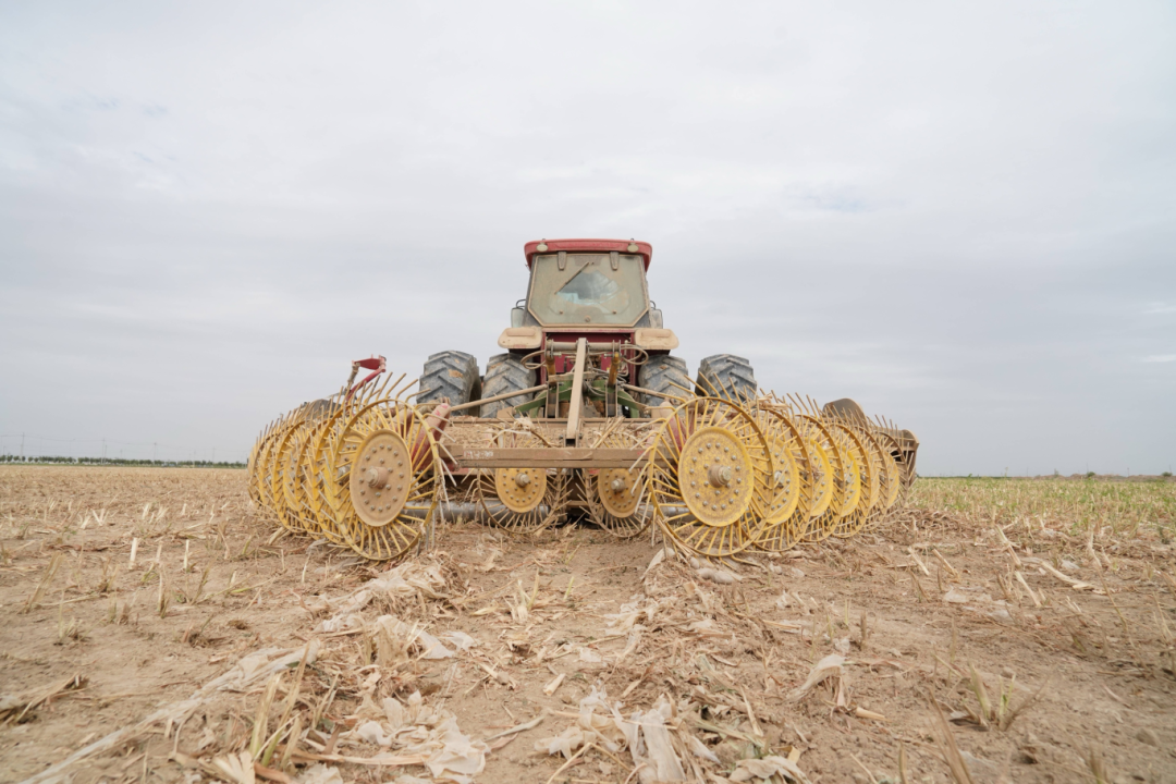 打杆搂膜机(左):通过旋转的搂膜杆将地面散落的残膜、秸秆等杂物搂集起来,利用机具前进的动力和搂膜杆的转动,将残膜聚集成堆状,方便后续收集。残膜打包机(右):将搂集后的残膜进行收集和运输,实现残膜的高效处理。
