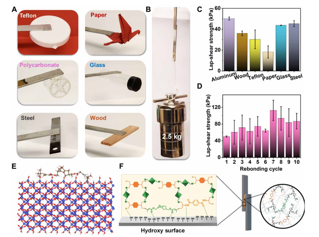 在水下粘铝片,剪切强度达到6.51 MPa,远超大多数商用或科研胶; 在钢板上表现也不俗,剪切强度高达14.9 MPa; 在玻璃和木材上直接出现“材料本身破裂”,胶层完好无损; 甚至能将碳纤维或玻璃纤维复合材料牢牢贴在金属上,适合航空汽车等行业需求。