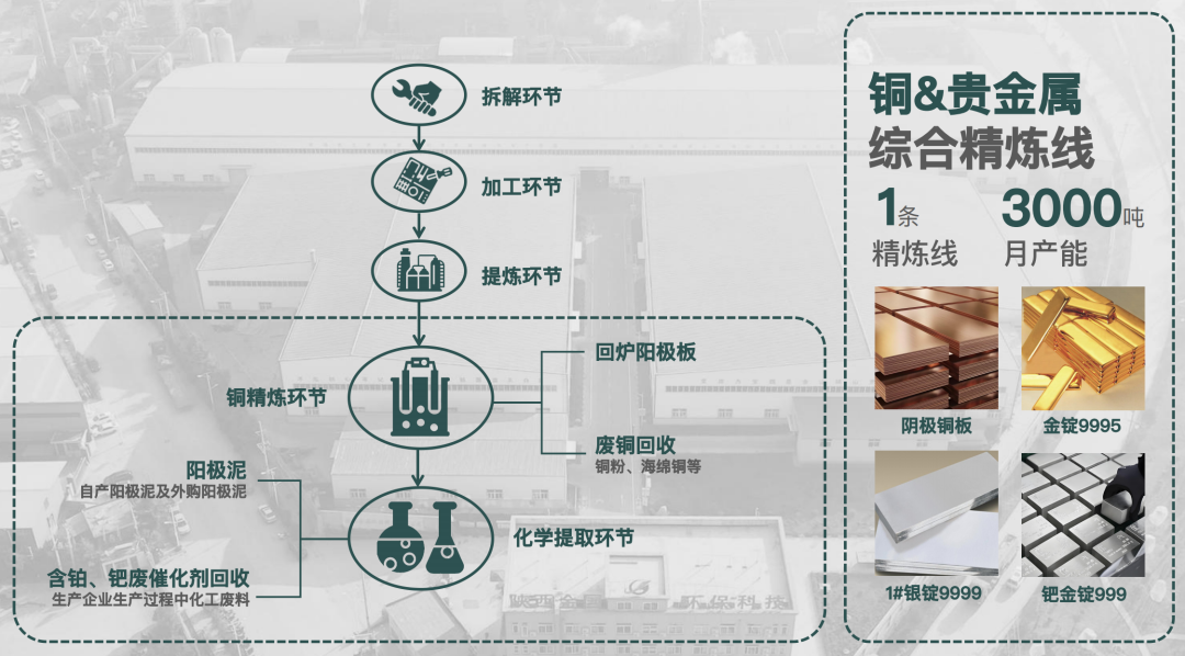 资质只是入场券,技术才是护城河。金国环保的技术优势在于其“物理拆解-焚烧减量-稀贵金属富集-再生原料深加工”的高值化闭环的构筑,实现了资源转化率超行业均值40%的惊人成绩。此外,金国环保在西北、华东建立6大回收枢纽,直连1000家制造业客户,实现再生原料的逆向供应。她还布局了“再生原料期货化”,将合金铜锭嵌入汽车、电子企业供应链,以价格锁定对冲市场波动。