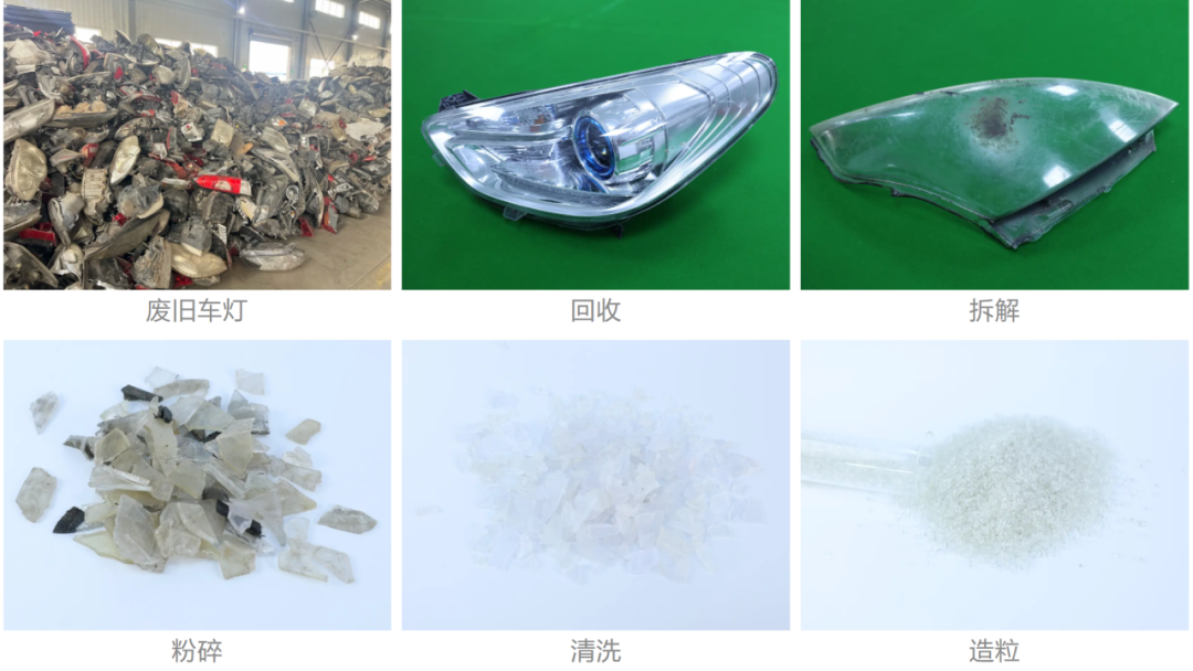 奥塞尔PC 2010B-Car18 是基于单一废旧汽车车灯来源的消费后回收 PC 材料,通过拆解、分选、粉碎、清洗、造粒,将报废汽车车灯变为高性能的“车到车“PCR 材料。奥塞尔已经解决了废弃车灯表面镀层去除、高粘性橡胶去除、其它异物去除三大世界级难题,并且自主研发了配套的超百米高自动化清洗线,将废弃车灯循环技术实现单一生产线上万吨级的产业化、规模化,材料已经应用于多款国内知名品牌车型,解决了“车到车”最核心的回收技术难题,由此可实现国内报废汽车零部件到新车零部件的闭环应用,为废弃车灯材料循环经济树立全球标杆。汽车闭环项目凭借尖端再生技术与全链路追溯体系,已经获得 TÜV 全球首张废旧汽车车灯来源认证与 UL2809 全球首张车灯再生料来源认证,重塑汽车全生命周期的可持续未来 ,填补汽车零部件高值化回收的国际标准空白 ,推动中国制造与国际 ESG 标准接轨。
