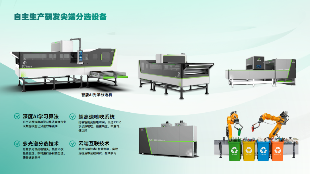 智慧化分拣体系:配置AI分选机器人、光谱检测等智能装备