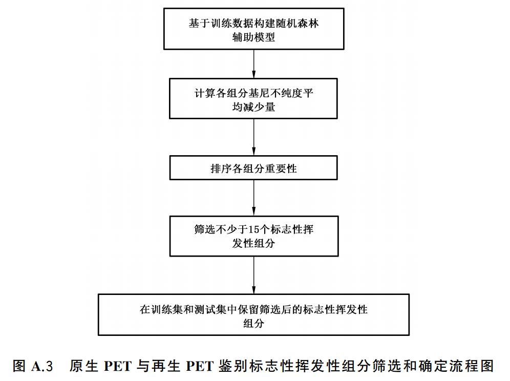 原生PET与再生PET鉴别标志性挥发性组分筛选和确定流程图见图A.3。