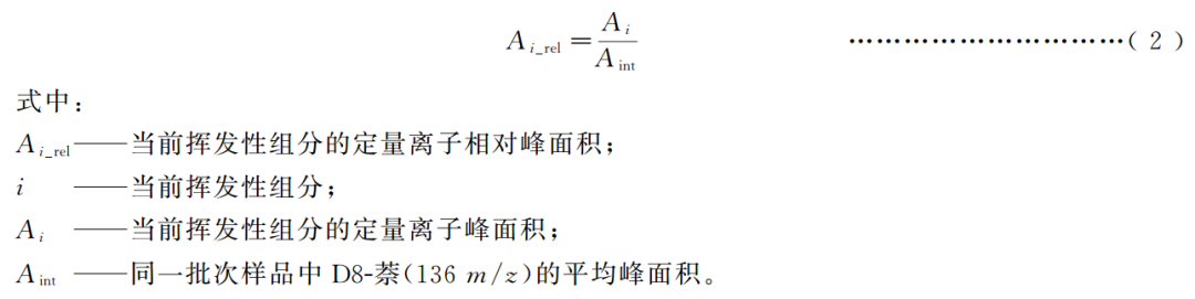 按公式(2),计算各挥发性组分的定量离子相对峰面积。