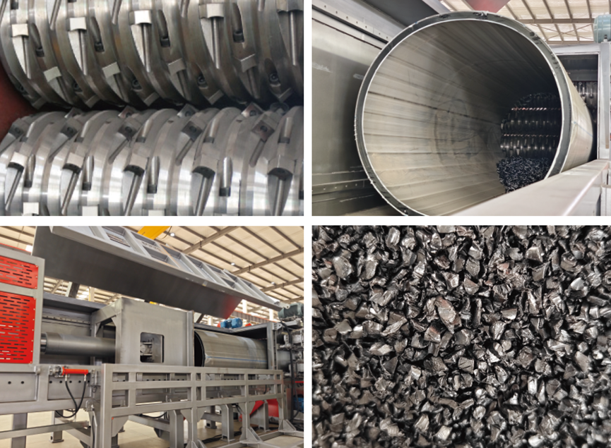 单轴撕碎机的用途广泛,可处理大口径 PE/PVC 管材与板材、PP、PC、ABS 块状金条、托盘、废旧电线电缆,以及废金属、玻璃纤维、碳纤维等物料。