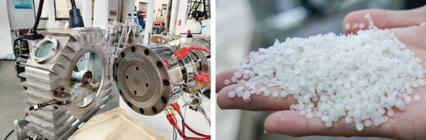 水下切粒系统适用的材料涵盖多个领域,包括增强改性类,如 PVC、PE、EVA 等与碳酸钙、滑石粉、钛白粉、炭黑的组合;可降解母粒类,如 PE、PS 等与淀粉、助剂等的搭配;以及阻燃母粒类,如 PE、EVA 等与阻燃剂等的混合。
