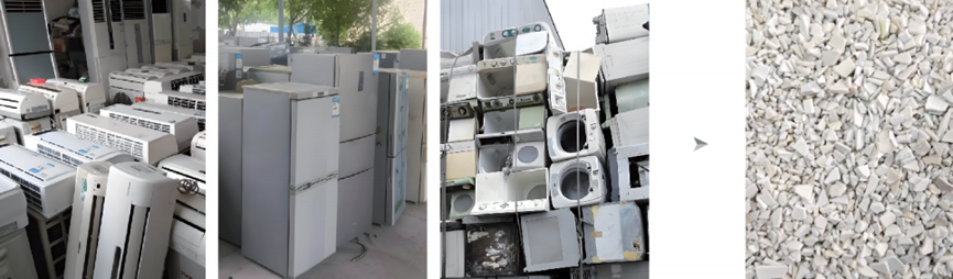 用于回收的废旧家用电器塑料壳如电视、冰箱、空调等硬质塑料方面的破碎、清洗回收作业。