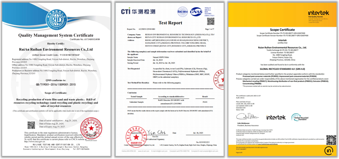 作为国家级高新技术企业,瑞涵资源拥有研发、测试、生产、销售和技术服务的完整体系。公司年产5万吨各类再生塑料,旗下PCR-PP、PCR-HDPE以及多款功能性循环新材料广泛应用于包装、建材、汽车、消费品等领域,满足了国内外客户日益增长的绿色需求。