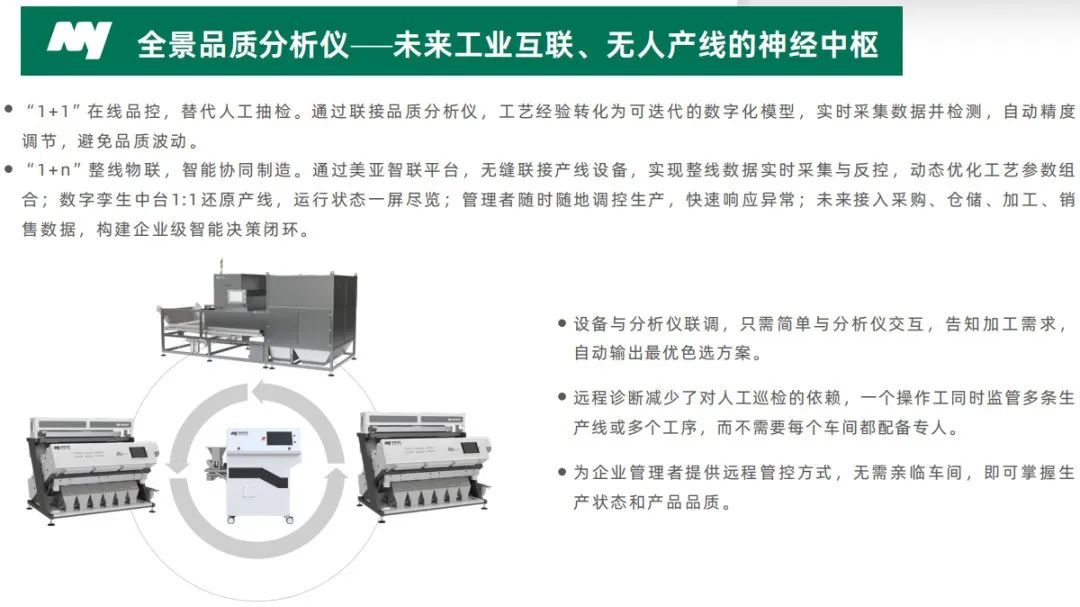面向数智化时代,美亚光电为用户打造了系统性的工业物联解决方案。通过美亚大师1+1在线品控系统,实时感知物料状态并自动调整参数,确保分选精度和一致性;同时,赋能企业管理者远程实时监控生产状态和产品品质,无需亲临车间即可全面掌控。美亚AI+全景塑料品质分析仪,以先进的检测技术和全面的预警功能,为您的产品品质提供有力保障,让您的塑料加工更加高效、稳定、可靠。